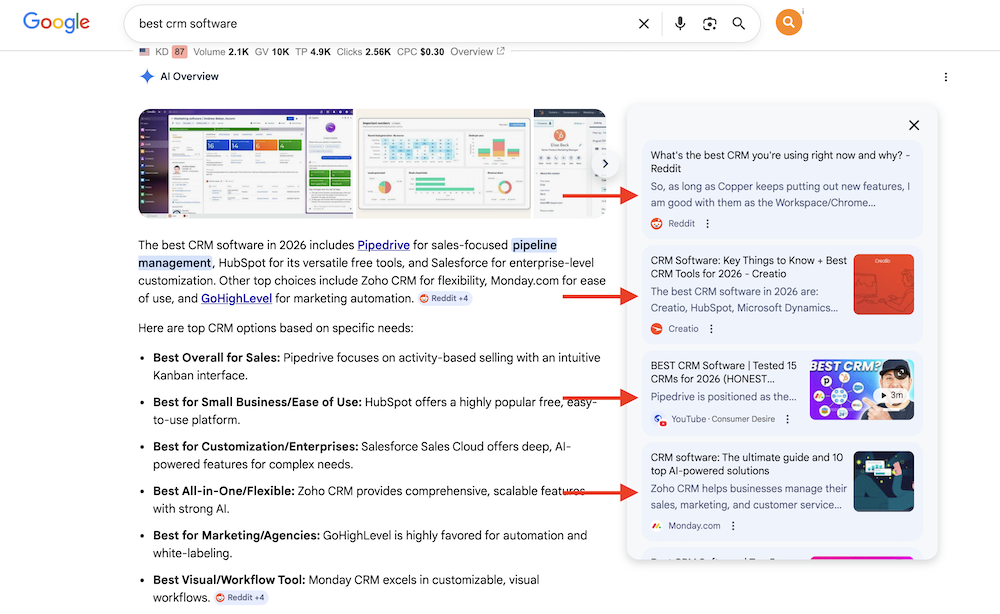 AI Overviews do not work like a simple ranking table where one page wins and everyone else loses. They are synthesized answers. Google pulls from multiple sources, blends them, and tries to present a concise answer that feels trustworthy.